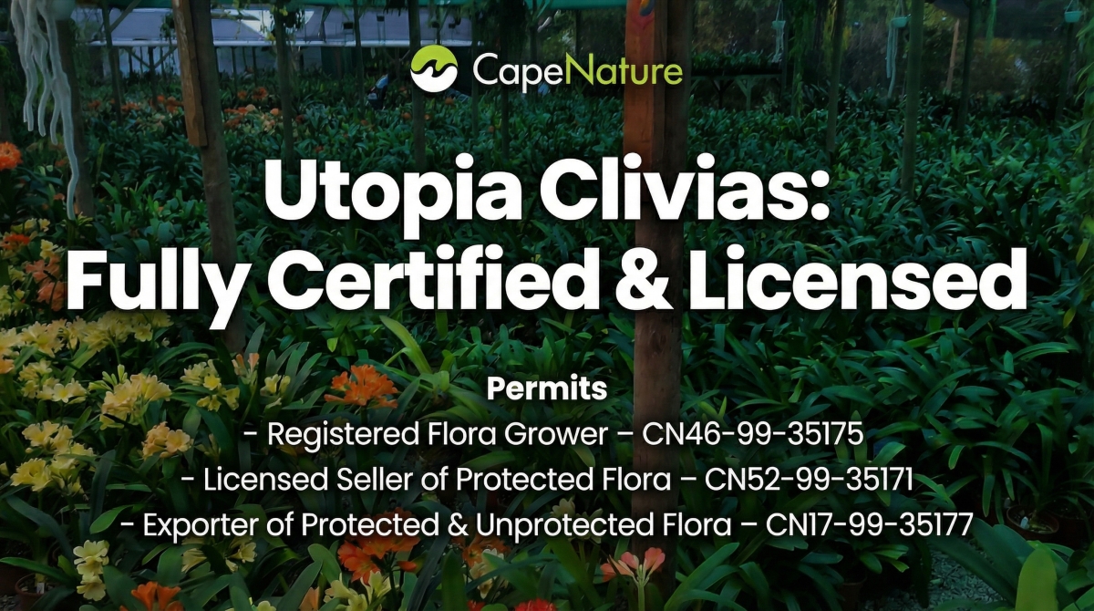 We are proud to announce an important milestone for Utopia Clivias. After an extensive and carefully regulated process, our nursery is now officially registered and licensed with CapeNature as a flora grower, seller, and exporter of Clivia species.