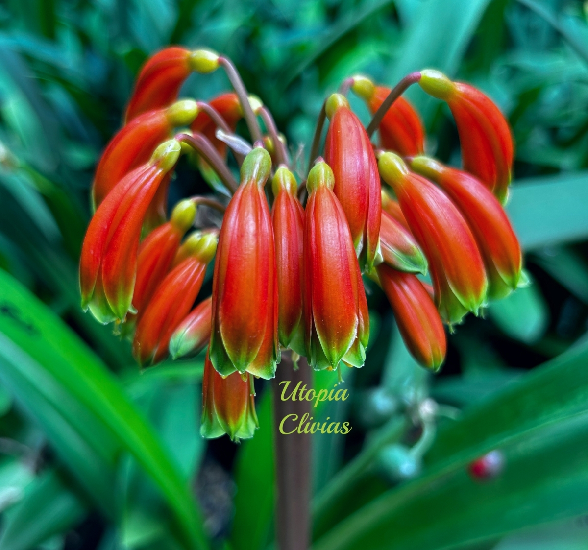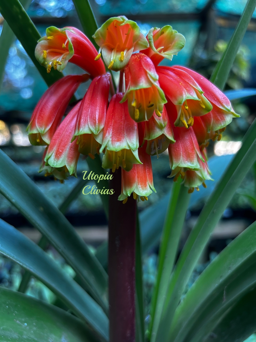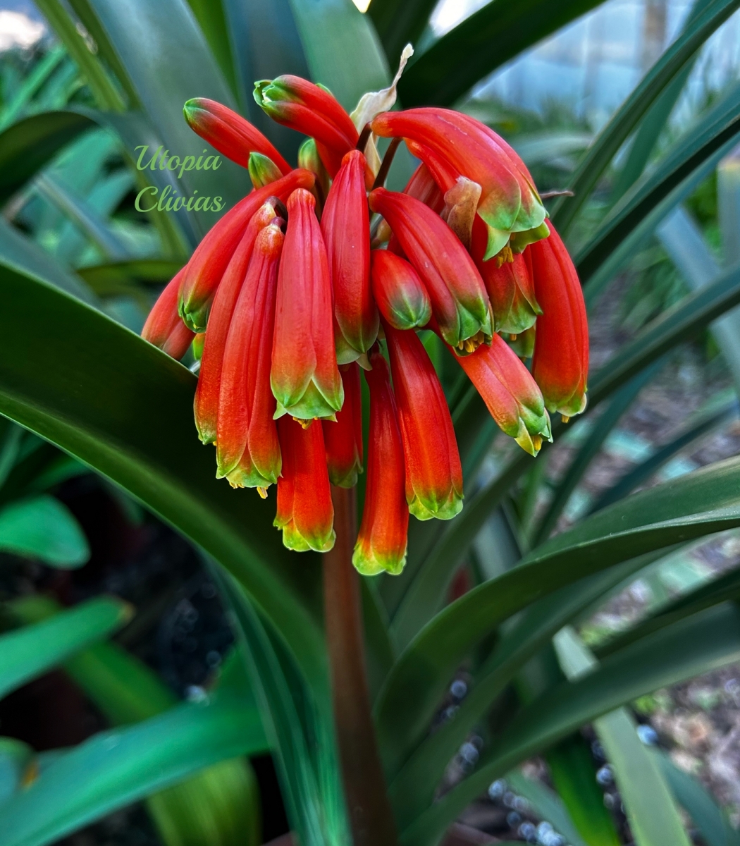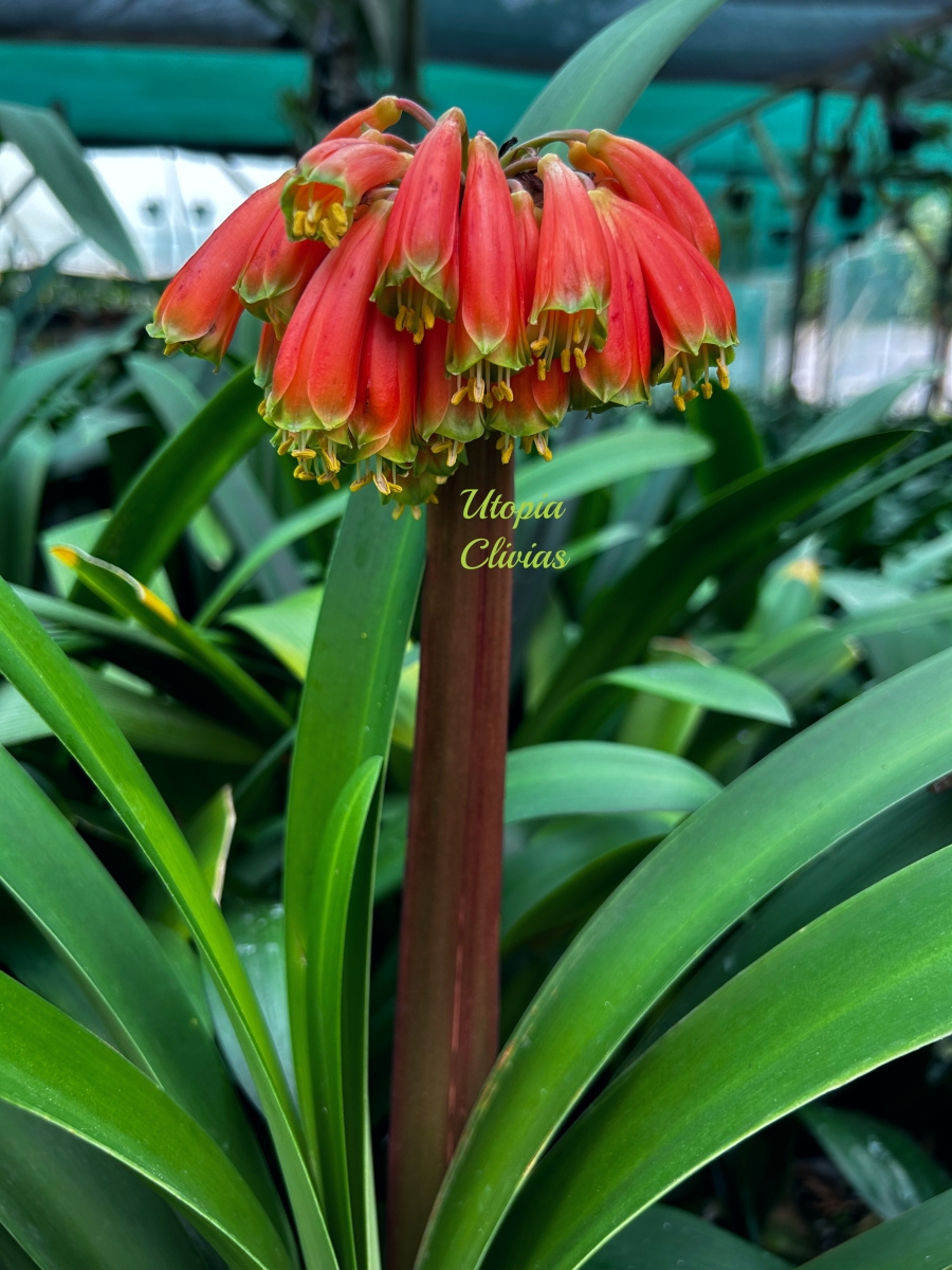 At Utopia Clivias, Clivia robusta is valued for its impressive stature, pendulous flowers, and breeding potential, particularly in the development of large-growing hybrids suited to moist, shaded garden conditions.