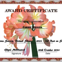 Second runner up to Best on Show Clivia Society International Virtual show 2021