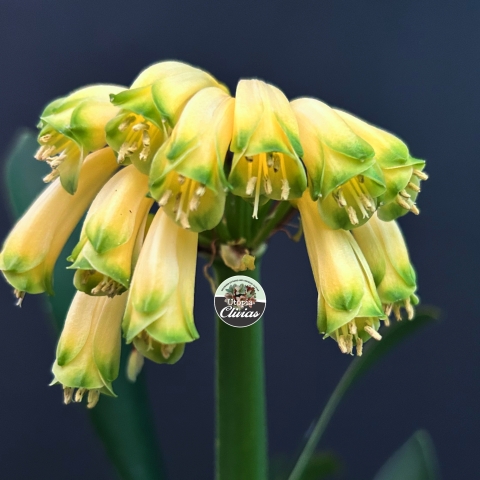 Yellow Caulescens — extremely rare Clivia species featuring pendulous yellow flowers, elongated stems, and exceptional genetics for breeding.