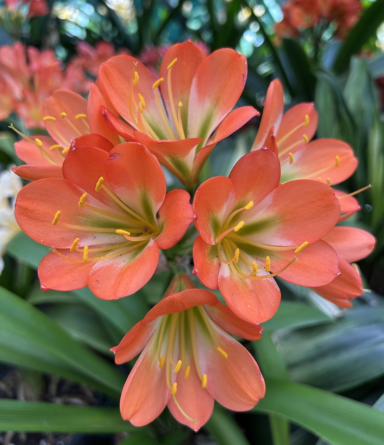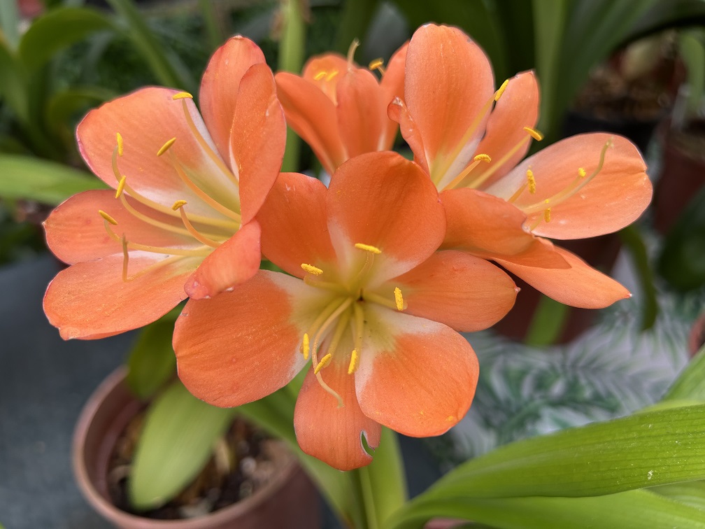 An assortment of orange with green in the center from various crosses.