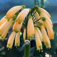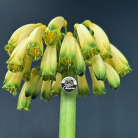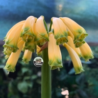 Yellow Caulescens — extremely rare Clivia species featuring pendulous yellow flowers, elongated stems, and exceptional genetics for breeding.