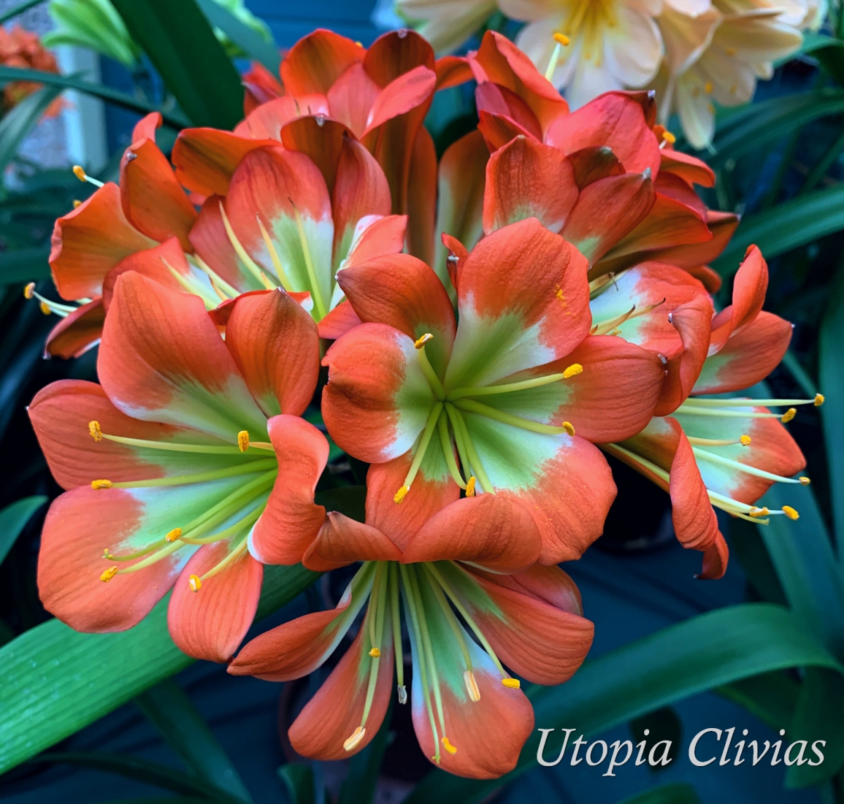 At Utopia Clivias, we’ve spent years carefully selecting and refining our bronze and green-throated plants, breeding only with the very best to advance this line. Each flowering season brings new surprises as fresh seedlings bloom for the first time — often so stunning that they earn a permanent place in our breeding collection, replacing older stock.