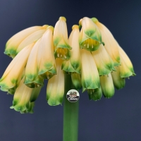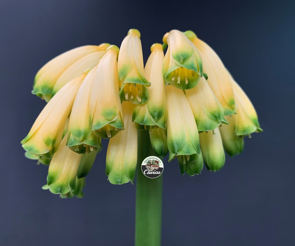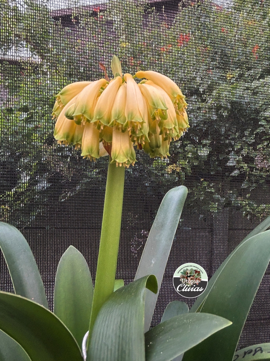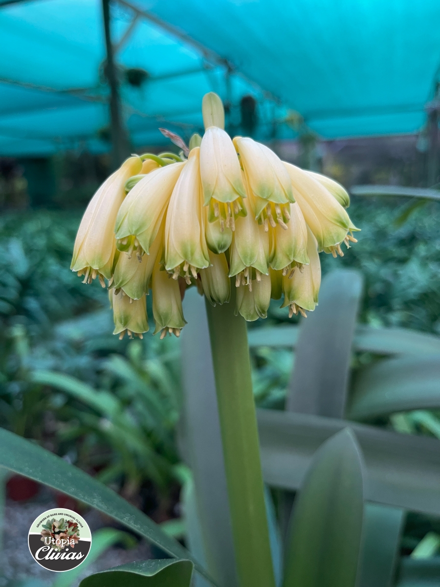 At Utopia Clivias, we are fortunate to cultivate an extremely rare variegated yellow Clivia caulescens, grown from seed. This plant represents a naturally occurring genetic mutation, highlighting the remarkable diversity and unpredictability within the species.