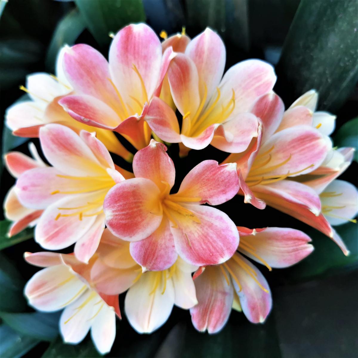 ‘Deklan’ is a plant with a beautiful head of recurved pastel pink flowers bred by the Late Johannes Boshoff de Kock (Bossie De Kock). Deklan was named after Bossie De Kock`s son. The breeding is unknown, but has been proven to split for grp.1 yellow. Deklan breeds beautiful recurved pinks and pastels. This plant was first featured on the cover of the Clivia Yearbook 6.