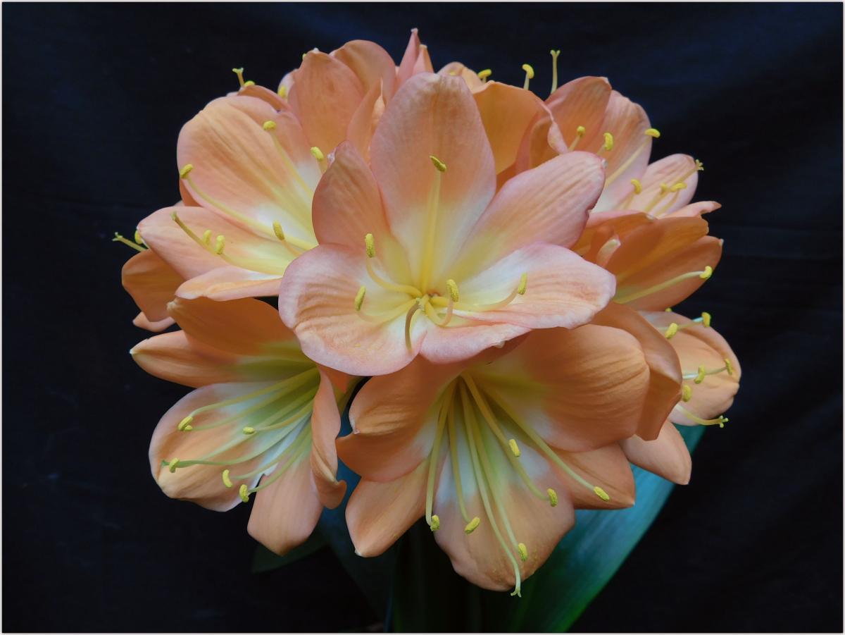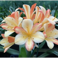 Naude’s Peach was first entered into the Natal Clivia show in 1996/7 by Olive Naude, the only other mutation around was Chubb’s peach. It opens up yellow and matures to a light pink/peach on the outside of the tepals, and was therefore named Naude’s Peach. It is now it is classified as a versicolour belonging to the ‘’Splash group’’. Although the original Naude`s Peach flowers are not anything spectacular, it has proven to be one of the best breeding plants around.