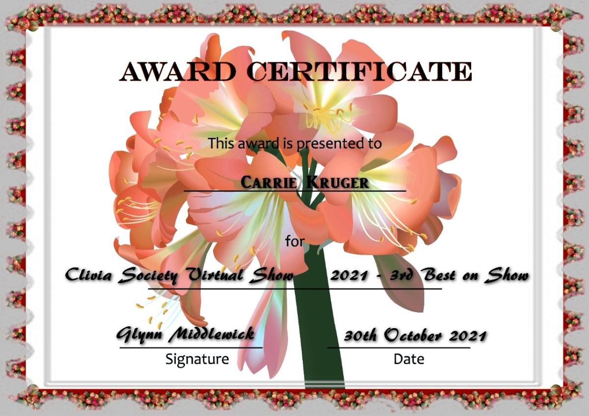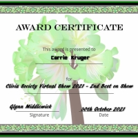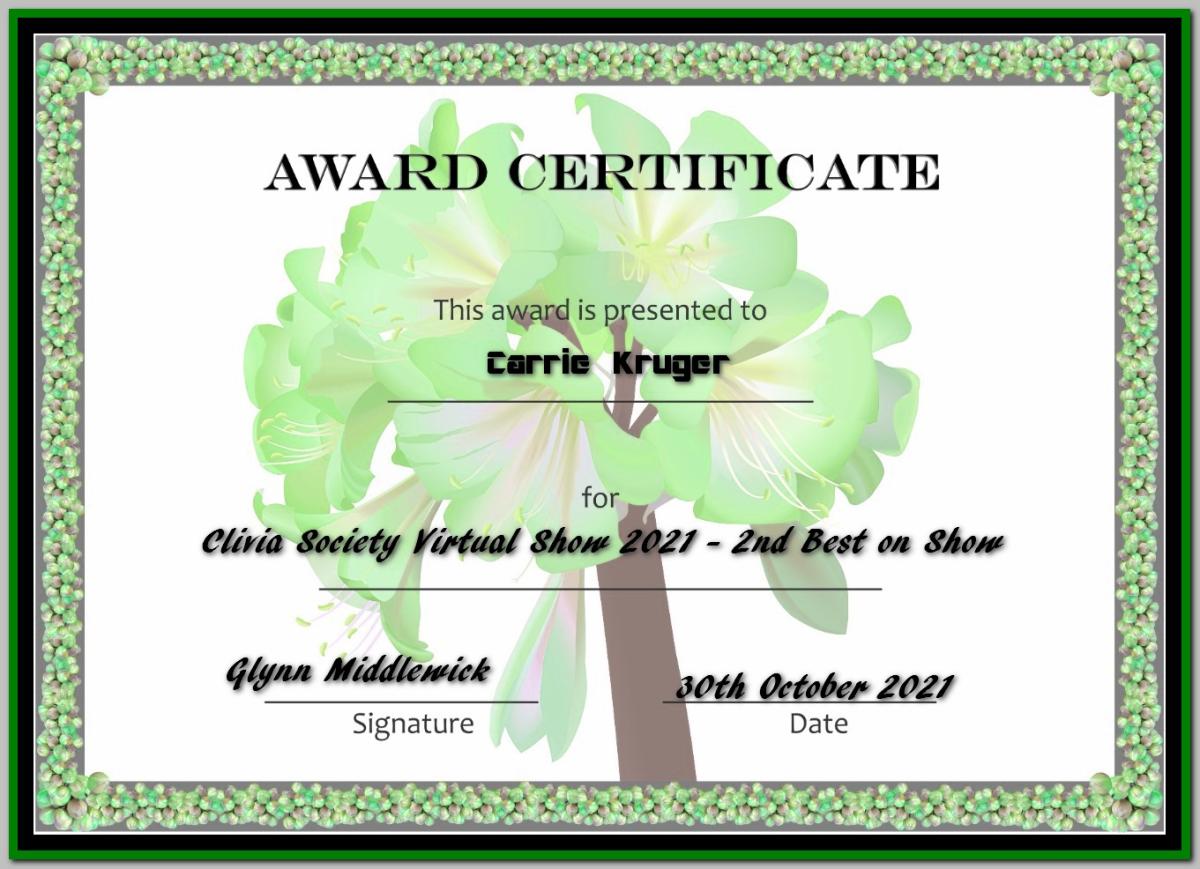 Runner up to Best on Show Clivia Society International Virtual show 2021