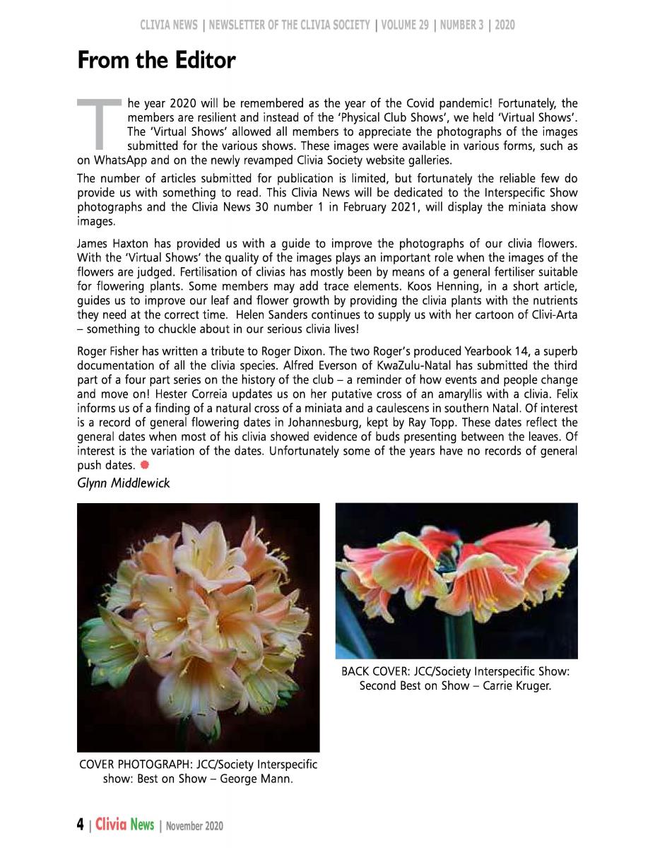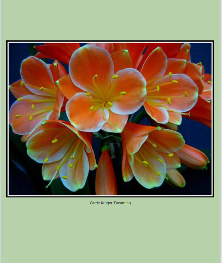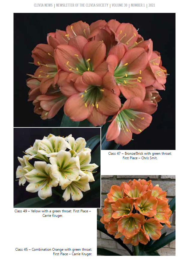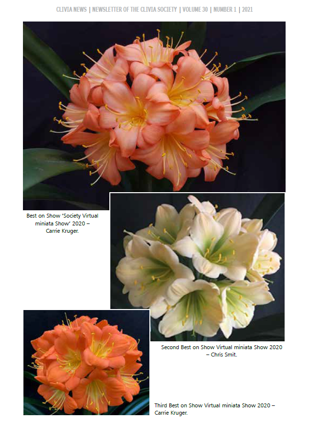 Our clivia photos have been published in many magazines and Clivia Society Newsletters and Yearbooks. Our Clivias have featured on the front pages of the Yearbooks and Newsletters numerous times.